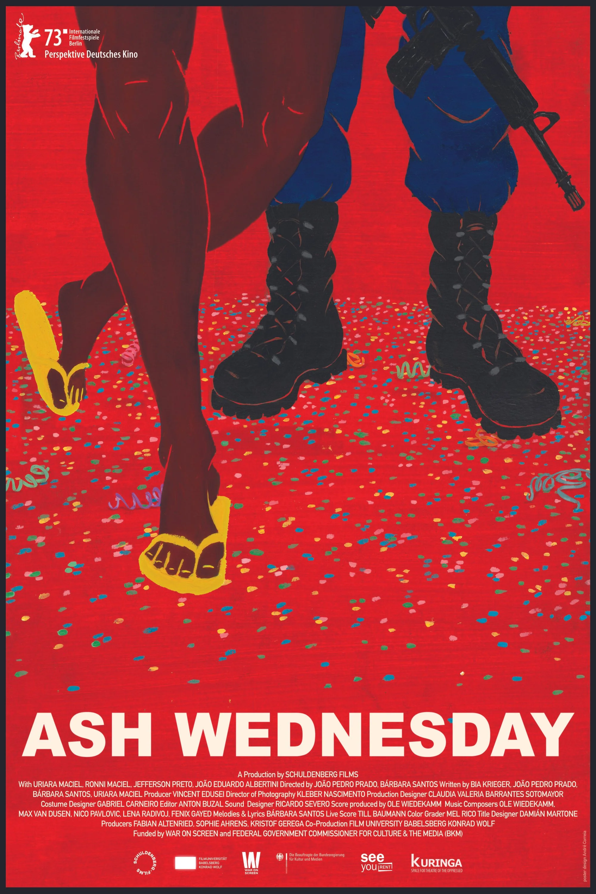 Ash Wednesday is a production of Schuldenberg Films in co-production with Filmuniversität Babelsberg KONRAD WOLF, funded by the German Ministry of Culture (BKM) and War on Screen Fabrique/Region Grand Est of France. Co-directed by Bárbara Santos, it celebrated its world premiere in February 2023 at the 73rd Berlinale - Berlin Intl. Film Festival in the section Perspektive Deutsches Kino for up-and-coming talent in German cinema. Its South American premiere took place in October 2023 at the Rio de Janeiro Intl. Film Festival.
